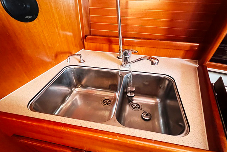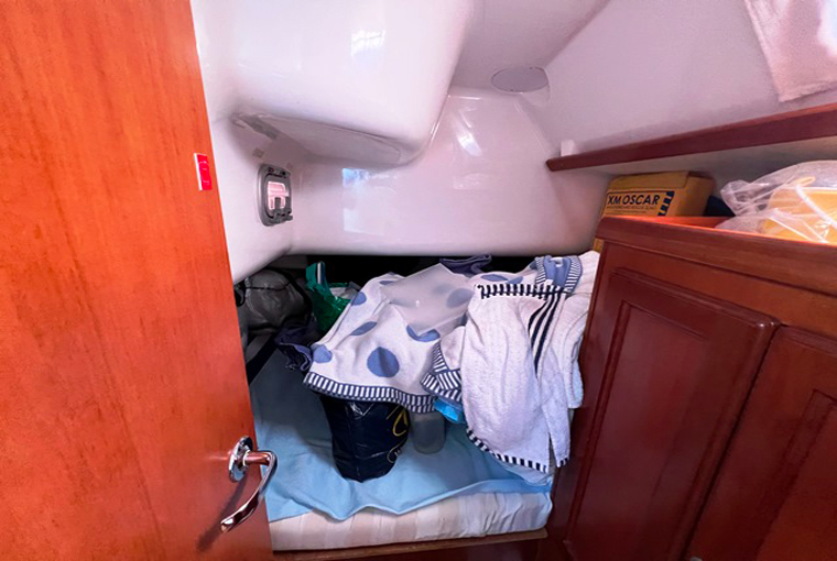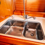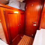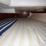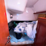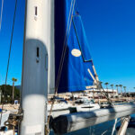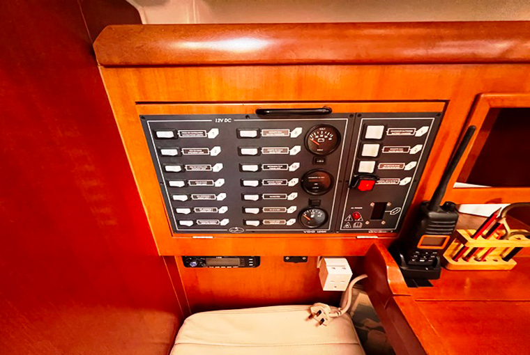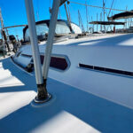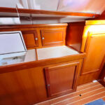 Additional features include furling sails, a sprayhood, bimini, auto-pilot, GPS, VHF with DSC, and shore power, among other amenities, including two flat-screen TVs.