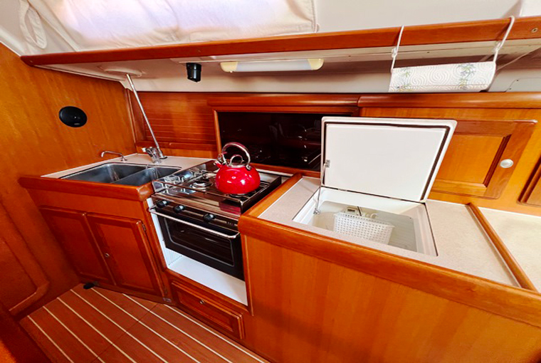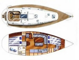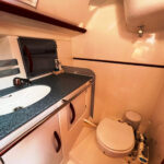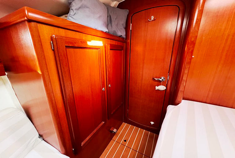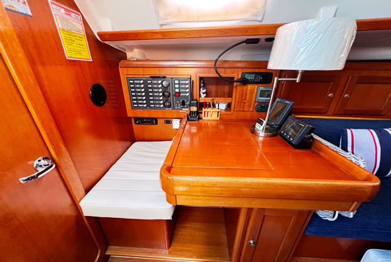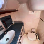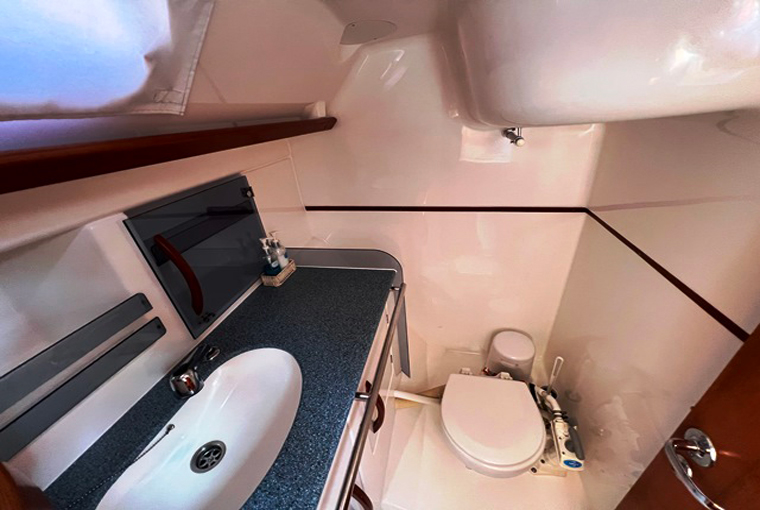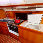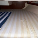 Produced in 2003, this vessel is in outstanding condition, offering excellent value. It features a spacious cockpit with a steering wheel, seats with lockers, and open sea access via a swimming platform with a shower and ladder. The interior boasts a generous saloon, a chart table with an electronic panel, a starboard longitudinal galley equipped with a gas stove, oven, double inox sink, and a large fridge. Accommodation includes a portside double cabin, a bow cabin with a double berth, and a complete WC with essential amenities.