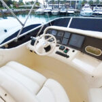Versatile in more ways than one, the Azimut 55 has great performance and stability while cruising at 20 knots, but can happily blast out to your favourite fishing spot at 29 knots. Twin Caterpillar engines, bow and stern thrusters, hydraulic steering and a well-equipped nav station makes her easily handled by owners or crew.