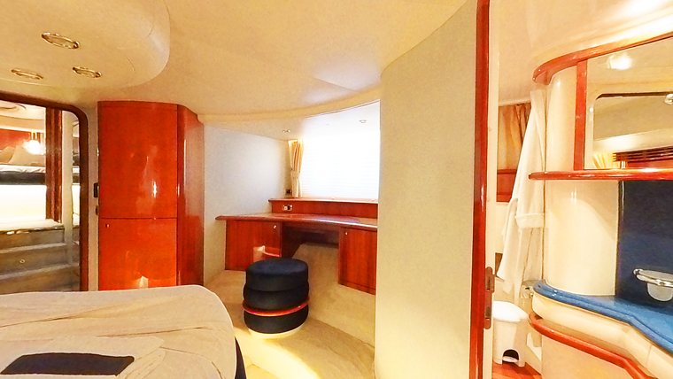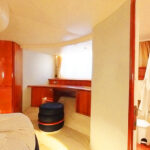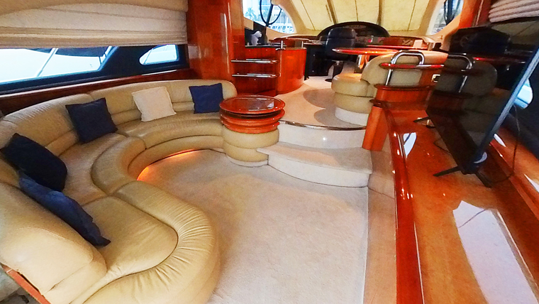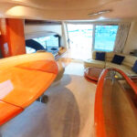The stunning interior is a hallmark of Italian luxury, with its beautiful curved seating, gloss finish woodwork and luxury leather lounges. A well-appointed galley doubles as a cocktail bar. Below deck, the master suite and guest cabins are beautifully understated with ample light and air flow.